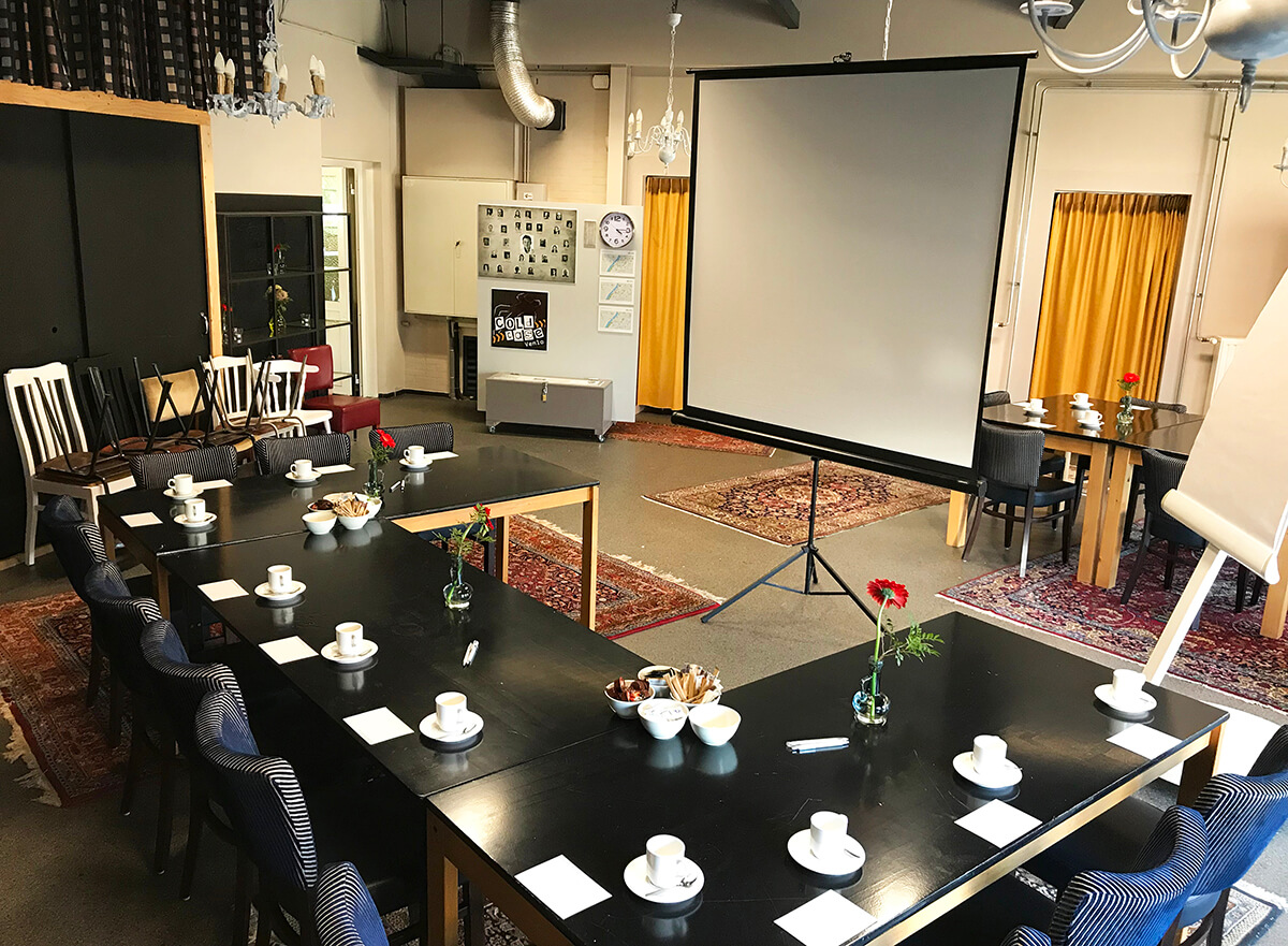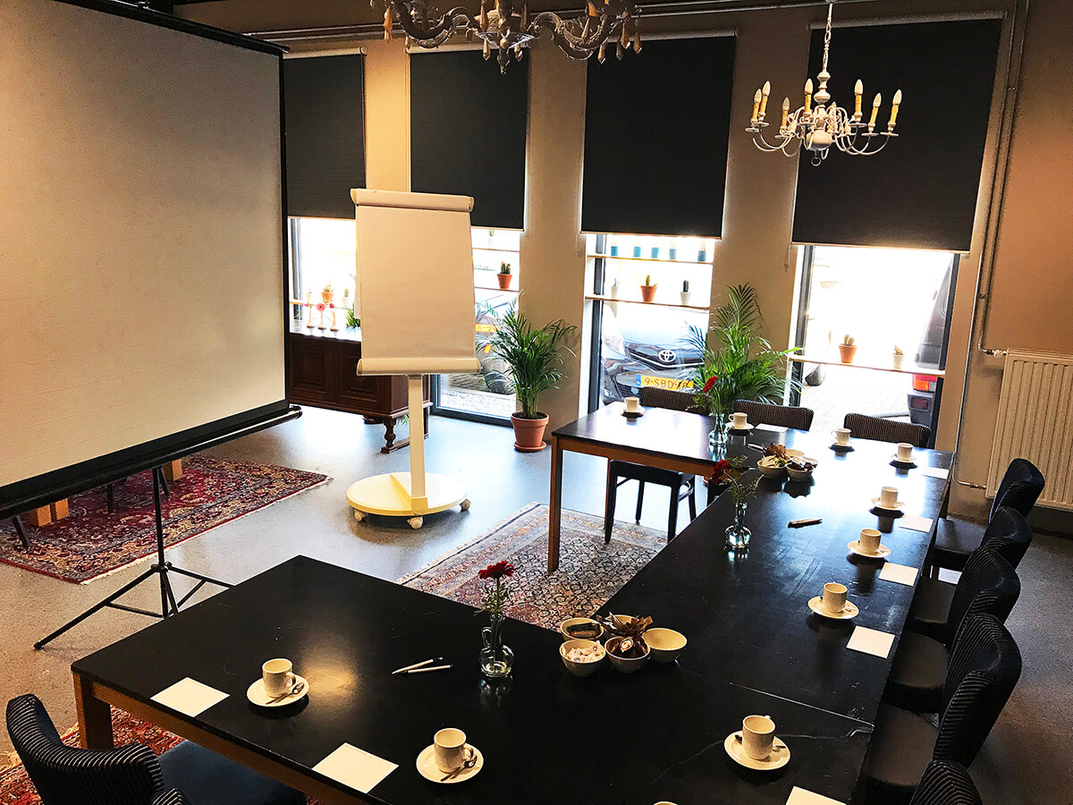 - Mogelijkheid om gebruik te maken van verschillende audiovisuele hulpmiddelen zoals een projectiescherm, beamer, schrijfmaterialen etc.