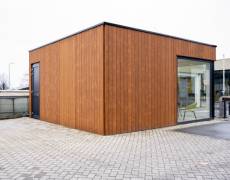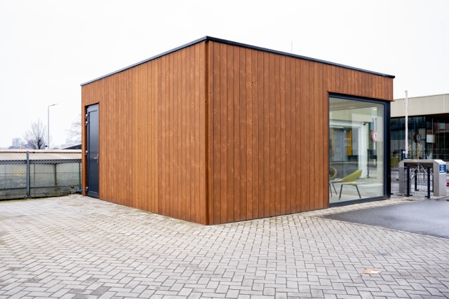 Sr. Advisor Anne Slabbers: ‘We zochten naar een functionele ruimte met een luxe uitstraling. We kozen voor een houten gevelafwerking omdat dit mooi past binnen onze bedrijfsdoelen op het gebied van duurzaamheid. Facility Manager Thijs Urlings: ‘We wilden graag een grote pui zodat de ruimte een open karakter zou krijgen. De grote raampartij creëert nu een mooie verbinding met het bedrijf.